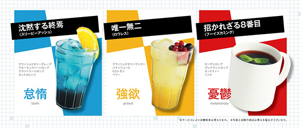 沈黙する終焉(スリーピーアッシュ)、唯一無二(ロウレス)、招かれざる8番目(フーイズカミング)のコラボドリンクが登場!クロ、ロウレス、椿それぞれをイメージしたドリンクは写真映えすること間違いなし。カラオケの鉄人限定グッズの販売も予定していますので、詳細は下記リンクからご確認ください。