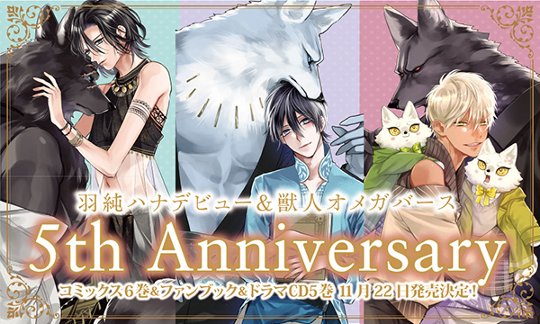 株式会社フロンティアワークス(アニメイトグループ)は、シリーズ累計130万部突破の大人気BLシリーズ作品「獣人オメガバース」の5周年記念ファンブックの発売が決定しました。ファンブックと合わせてコミックス6巻とドラマCD5巻も同時発売となります。詳細は以下をご確認ください。