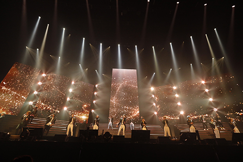 続いて、重厚なステージを生み出す『Valkyrie』は、炎が揺れるなかで「凱旋歌」を熱唱。切ない旋律の「Memoire Antique」では、ふたりの歌声とともに、ステージが赤、青、黄色と徐々に変わり、「希望」に向かって明るくなっていくような感覚に。最後には白い羽が降り注ぎ、ふたりを祝福しているかのようでした。