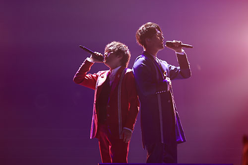「ラストスパートですよ!」、「まだまだ盛り上げられるだろう?」と、ざわつく会場をさらに盛り上げたのは『Jin & Akiomi』の「Rainbow Stairway」。「悩め 嘆け ただ立ち止まるな」と若者を応援しながらも、ハイタッチをして楽しそうにアイドルをしている樋柴さんと駒田さんのコンビは相棒みを強く感じます。