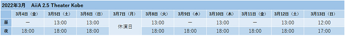 【兵庫公演】2022年3月4日(金)~3月13日(日) AiiA 2.5 Theater Kobe