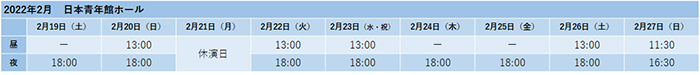 【東京公演】2022年2月19日(土)~2月27日(日) 日本青年館ホール