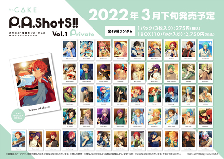 今回、 「fav.CAKE」が展開する新スタンダードアイテム「P.A.shots!!」から、アプリゲーム内に登場するイベントカードのイラストを使用した「P.A.shots!! Vol.1 Private」「P.A.shots!! Vol.1 Action」の受注販売を、本日2月1日(火)より開始いたします。