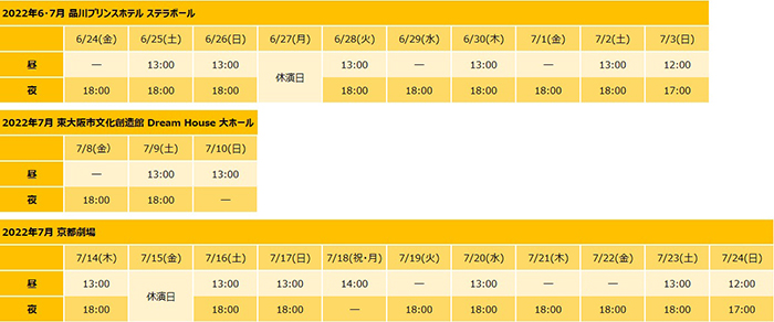 【東京公演】品川プリンスホテル ステラボール 2022年6月24日(金)〜7月3日(⽇)