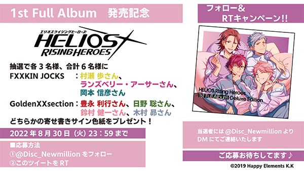 【『HELIOS Rising Heroes』 1st Full Album発売記念 フォロー&RTキャンペーン開催!】