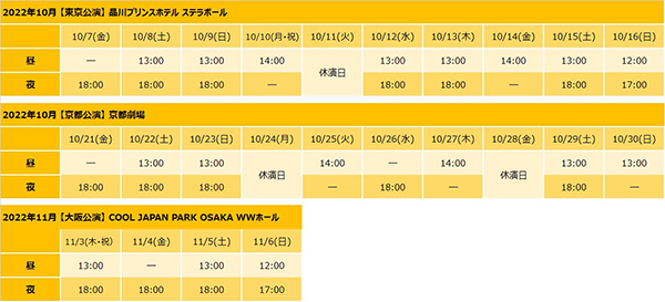 【東京公演】品川プリンスホテル ステラボール 2022年10月7日(金)~10月16日(日)