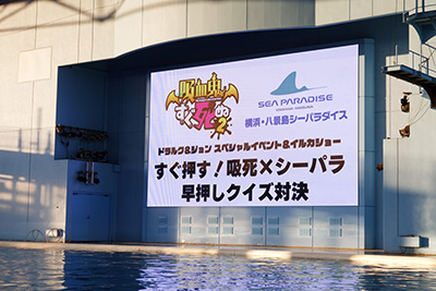 1月8日(日)には、“TVアニメ「吸血鬼すぐ死ぬ」×横浜・八景島シーパラダイス ドラルク&ジョン スペシャルイベント&イルカショー”が開催。ドラルク役・福山潤さん、ジョン役・田村睦心さんが出演し、作品についてのトークや、シーパラダイスにまつわるクイズ対決を行ったほか、この日のために用意された特別なイルカショーが披露されました。