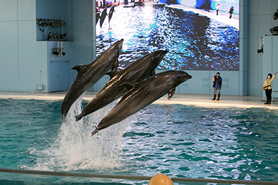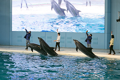 ●「ジャン“ヌー”!」の掛け声でイルカたちがジャンプ!