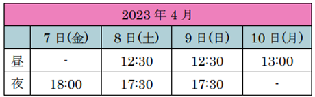 [大阪公演] 2023年4月7日(金)~4月10日(月)