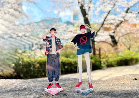 おでかけファッションの丹波と宇田川が、かわいいCDジャケットサイズのアクリルスタンドに!