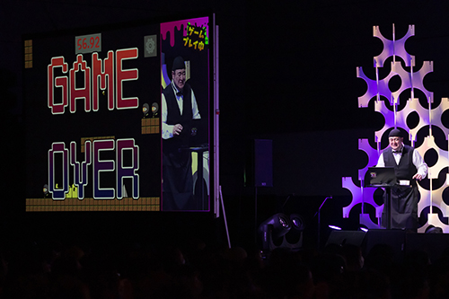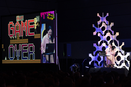 次のコーナーへ移るべく、「続いてのコーナーはこちらです!」と稲田さんが前振り。しかし、何も起こりません。少し困惑した稲田さんがもう一度前振りをしようとした瞬間、突如大音量の“あの”タイトルコールが会場にこだまします。