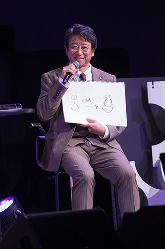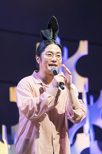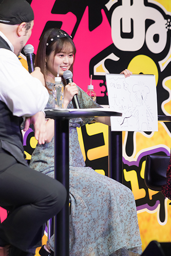 しかしその内容が、某夢の国の着ぐるみをオマージュしたようなものだったため、稲田さんがすかさず「カメラさん、ちょっと引きで撮ってください」と進言。井上さんが「(このキャラクターのモチーフは)クマでしょ?」とすかさずフォローするなど、見事なチームワーク(?)を発揮する姿に客席から、笑い声と拍手が起こりました。