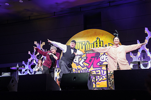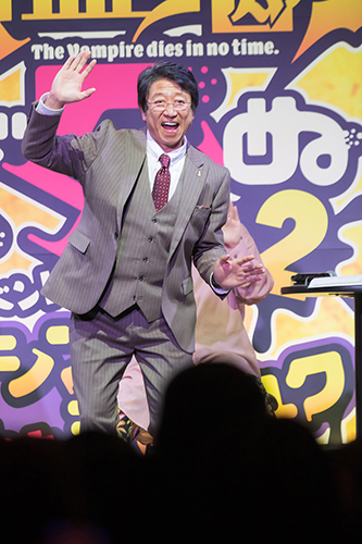 告知情報を挟み、エンディングへ。最後の挨拶では、ファンの声が聞けた喜びや、作品を応援してくれることへの感謝を一人ひとり、真剣に述べていきました。最後は、福山さんが「吸血鬼すぐ死~?」とファンに呼びかけ、「ぬー!」とファンが大きな声で返して、にぎやかなイベントを締めくくりました。