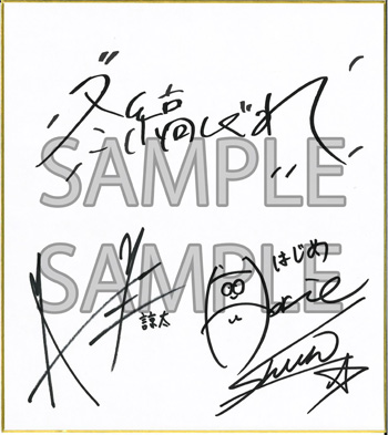 A賞:冬縞しぐれ先生、キャスト(篠原はじめ役:堀江 瞬さん、奥村諒太役:阿座上洋平さん)の寄せ書きサイン色紙