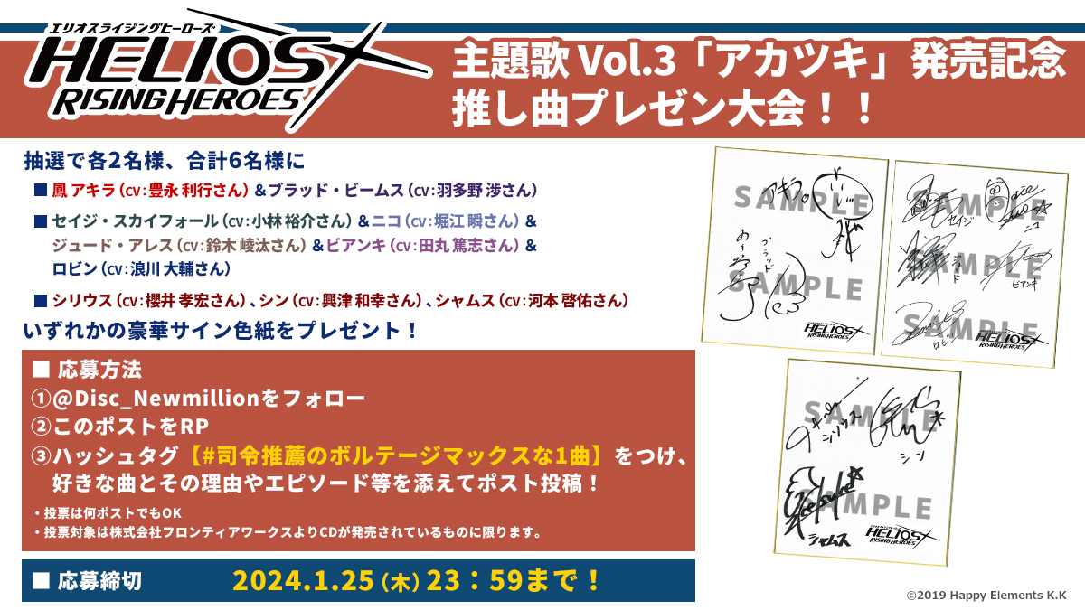 また『HELIOS Rising Heroes』主題歌 Vol.3 「アカツキ」の発売を記念して、推し曲プレゼン大会を開催します!