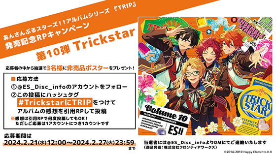また「あんさんぶるスターズ!!アルバムシリーズ 『TRIP』 Trickstar」の発売を記念してRPキャンペーンを開催。