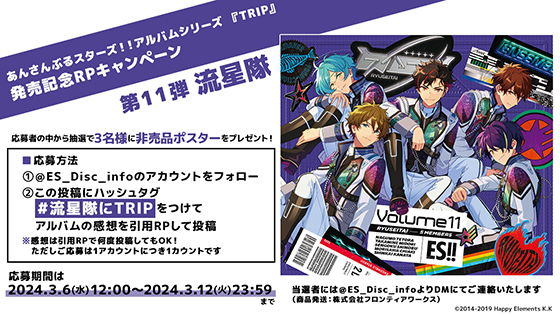 また「あんさんぶるスターズ!!アルバムシリーズ 『TRIP』 流星隊」の発売を記念してRPキャンペーンを開催。