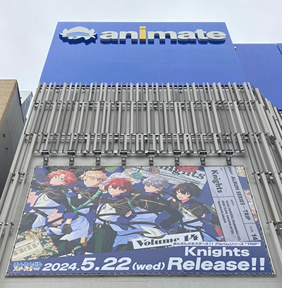 アニメイト池袋本店を見上げると、アイドル達の姿が!是非チェックしてくださいね。