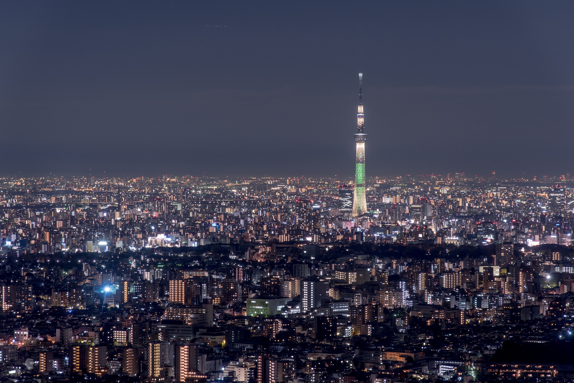 東京タワー、東京スカイツリーなどの観光名所のほか、新宿の高層ビル群や六本木ヒルズ、車が行き交う首都高速道路など、