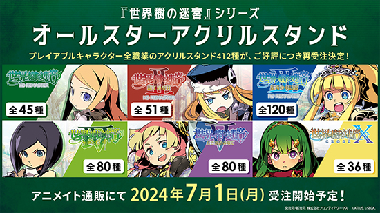 また、『世界樹の迷宮I~X』のアクリルスタンド全412種の再受注が決定!