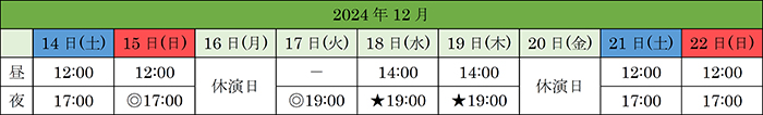 12月15日(日)17:00公演/12月17日(火)19:00公演