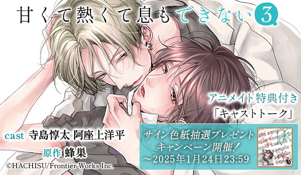 ドラマCD「甘くて熱くて息もできない 3」の発売を記念して、抽選プレゼント企画を実施いたします!