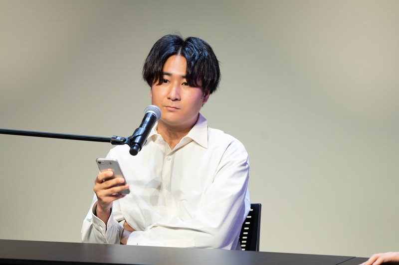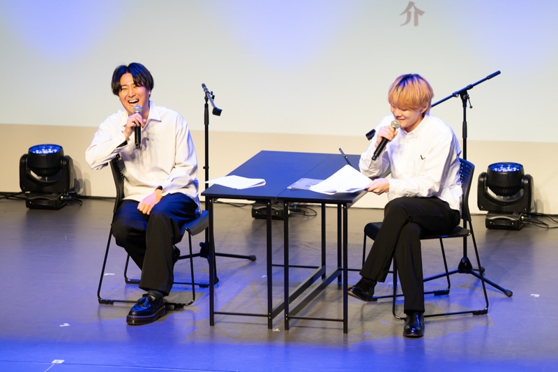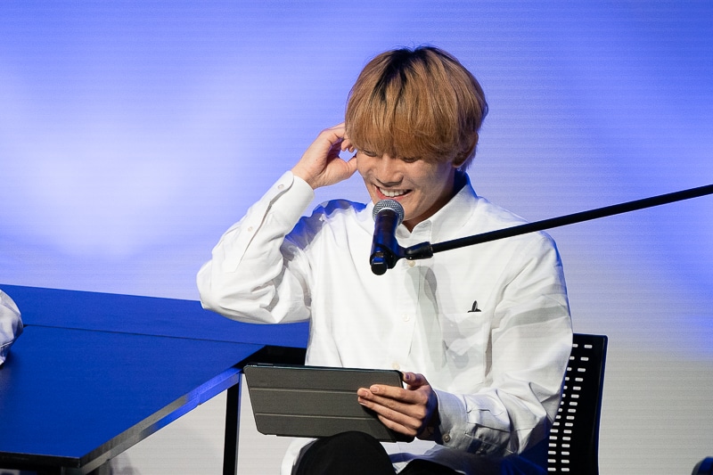 今井文也さん(以下、今井):それが難しいところですね。お互いにやりたくなってしまうというか。今回は手に持っているタブレットやスマホが台本なので、慣れも必要でした。色々と動きをつけられるので、そこは楽しかったなと思います。