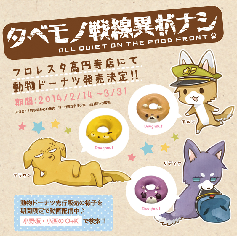 タベモノ戦線異状ナシの動物ドーナツ販売決定!!