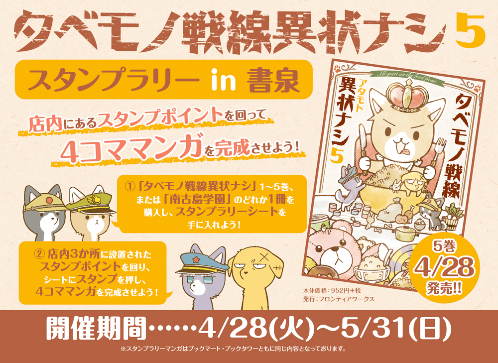 - 「タベモノ戦線異状ナシ5」 発売記念スタンプラリーin書泉 開催決定!