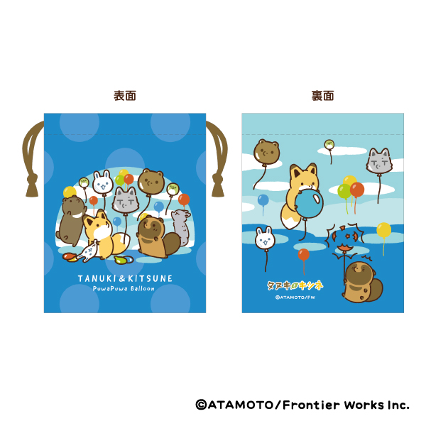 トラベル巾着 タヌキとキツネ まんぷく(全3種)
