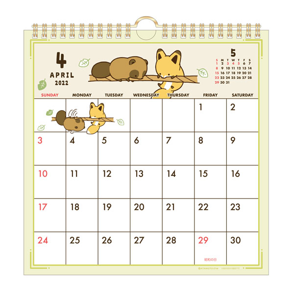 2022年1月始まり壁掛けカレンダー — 「タヌキとキツネ」公式サイト
