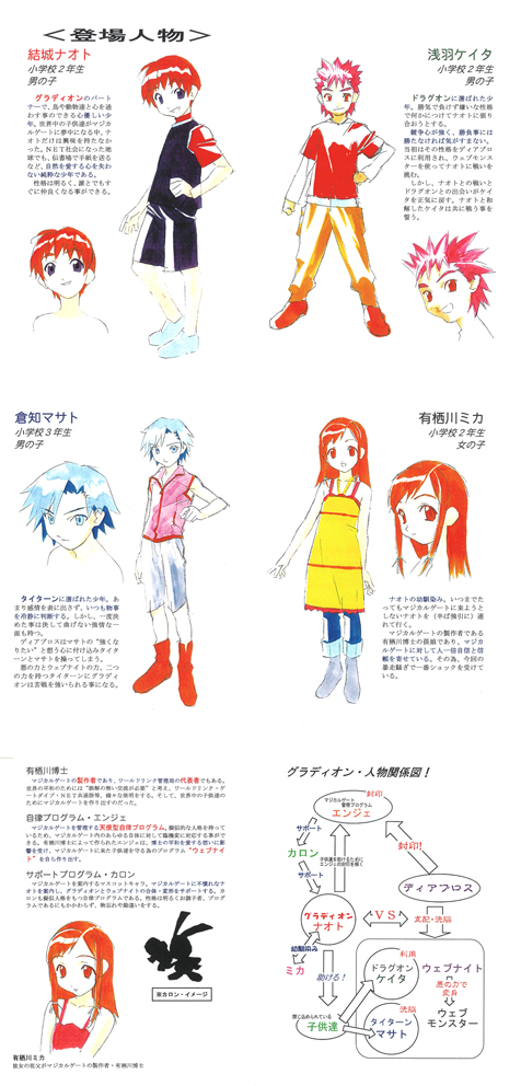 ネギシ あくまでも、この世界に入っている少年達の物語なので、少年達がウェブダイバーとなってWeb騎士達と一緒に戦うわけです。実際に玩具を買ってくれる子供達は、それぞれお気に入りのWeb騎士の商品を手にしてくれることになりますよね。つまり、商品を買ってくれた子供が、「ウェブダイバーになりきる」のが一番良いなと思ったんです。ドラグオンが好きで買ってくれたら「僕のドラグオンだ!」って、感じてもらえるように。この作品は小学校低学年をターゲットにしていたこともあって、「ごっこ遊び」が出来る……「僕はグラディオンやるね」「僕はガリューンだ」みたいに出来る配置(バディ関係)にしたんですね。
